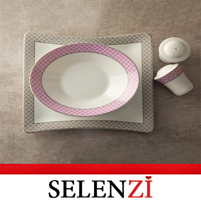 چینی زرین ساتین وینچی 6 نفره عالی با ترکیب رنگ صورتی و طوسیش کنار هم جذاب و خواستنی شده